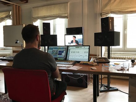 Enregistrement de voix d’acteurs pour la création de la borne COVID 19 (placée dans la cours du château de Neuchâtel)